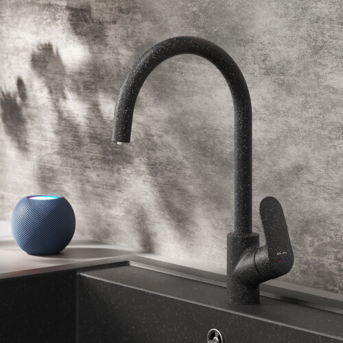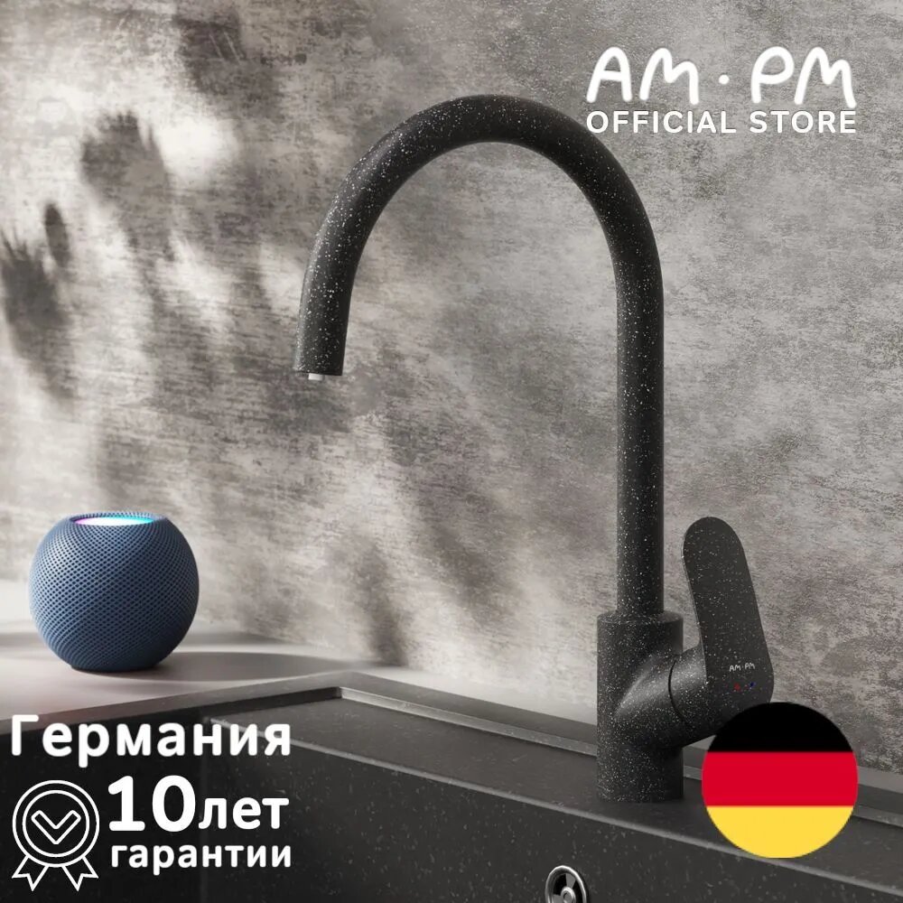 Смеситель для кухни AM.PM Likeс фильтром для питьевой воды, черный, высокий поворотный излив 234 мм