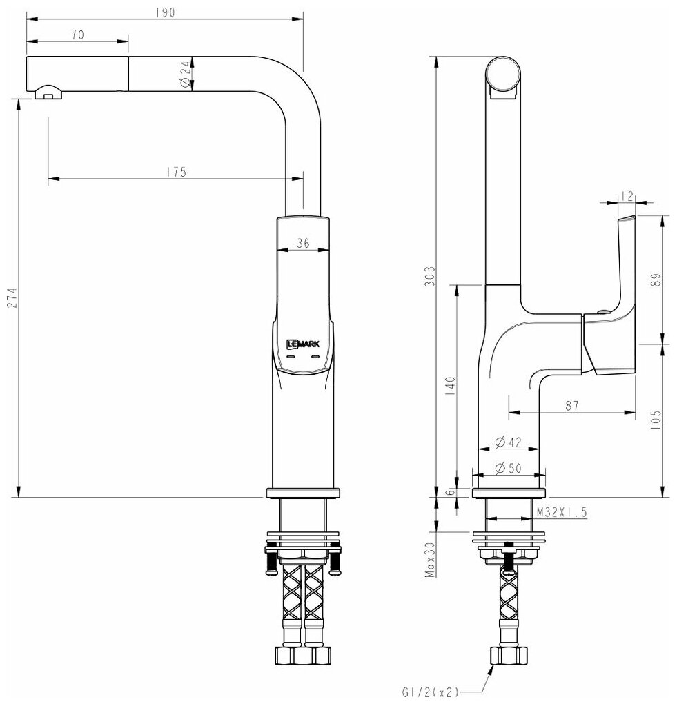 | Высота излива | 274 мм |