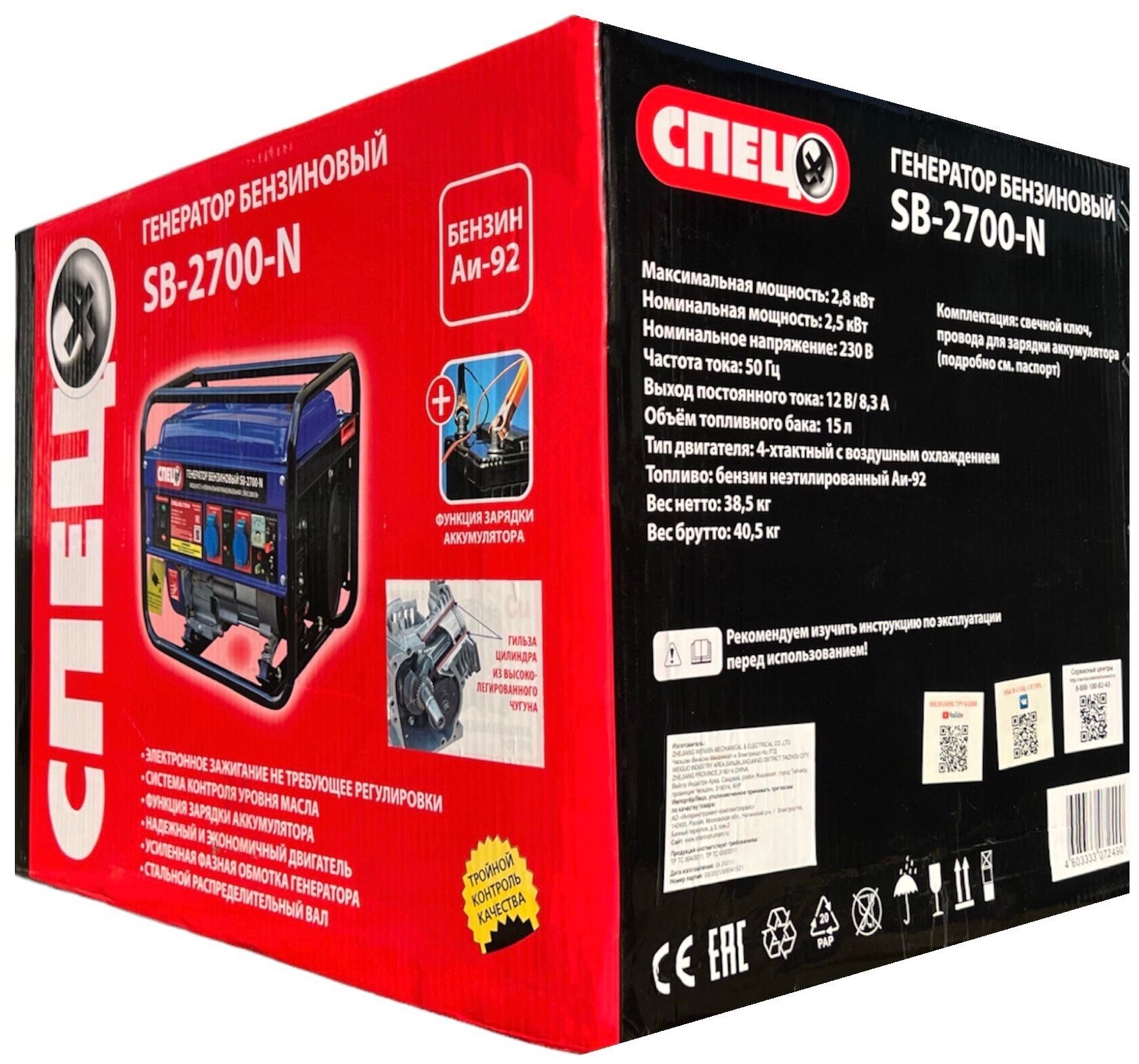 Ниже Вы можете прочитать отзывы на Бензиновый генератор спец SB-2700N, ознакомится с подробными характеристиками, посмотреть интересные обзоры и фотографии на Бензиновый генератор спец SB-2700N.