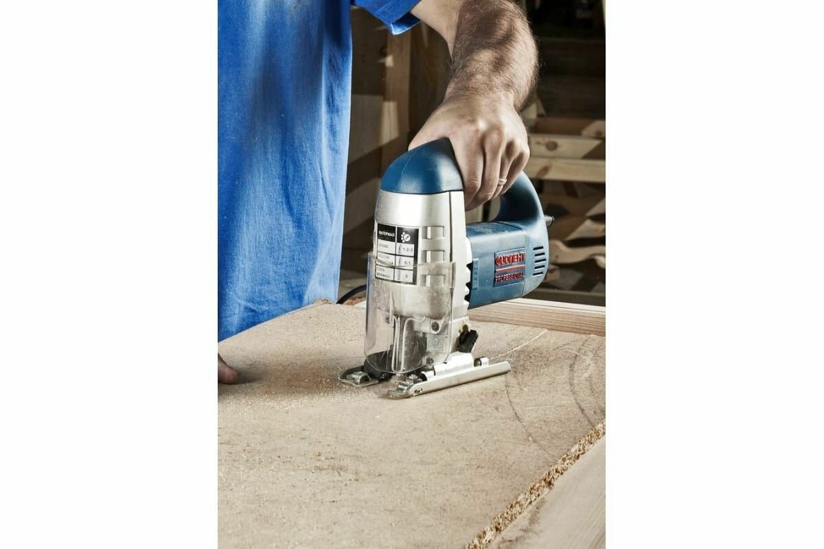 | Минусы: | Пилит криво из-за чудовищной вибрации – пилку уводит в сторону от линии, подошва гнется при малейшем нажиме, быстрозажимного крепления пилок нет, сдув опилок никакой – постоянно приходится очищать ветошью, вязнет в плотном дереве |