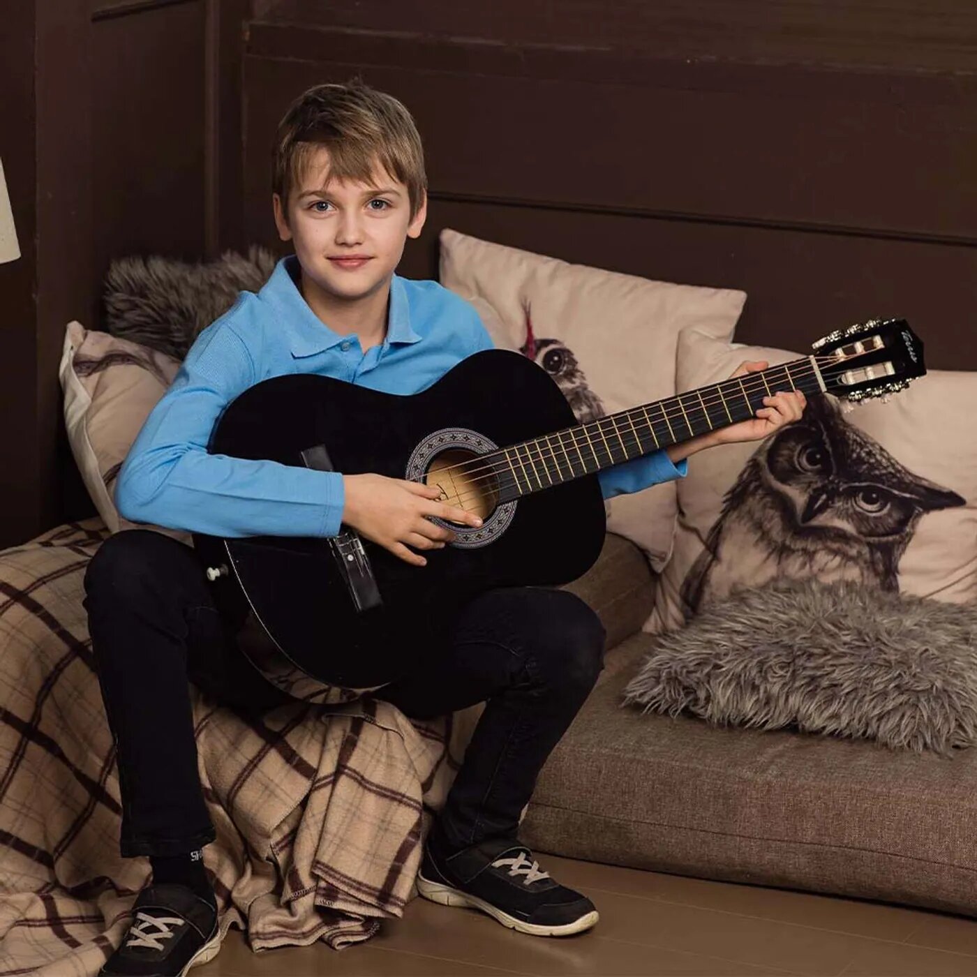 | Минусы: | струны на гитаре не нейлоновые ,как это сказано в характеристике гитары ,размер гитары не соответствует описанию также |