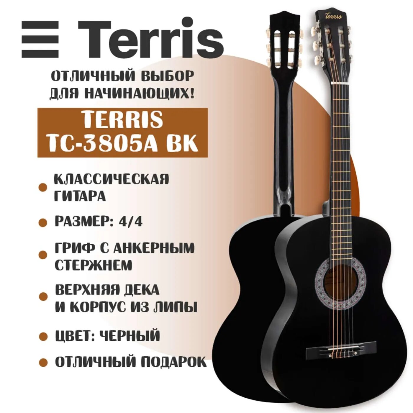 TERRIS TC-3805A BK гитара классическая, цвет черный