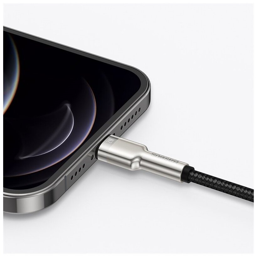 Кабель для зарядки и передачи данных Baseus Cafule Metal Data, USB to Lightning, 2.4A, 2 метра, Черный