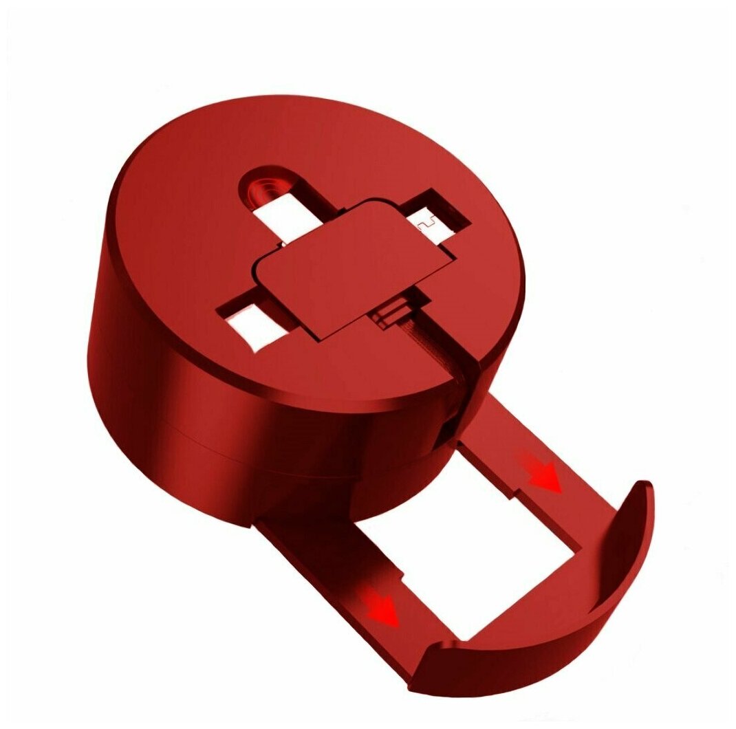 Телескопический USB-кабель для зарядки телефонов "3 в 1" с подставкой (max 100 см, 2.4А), красный интересное:
