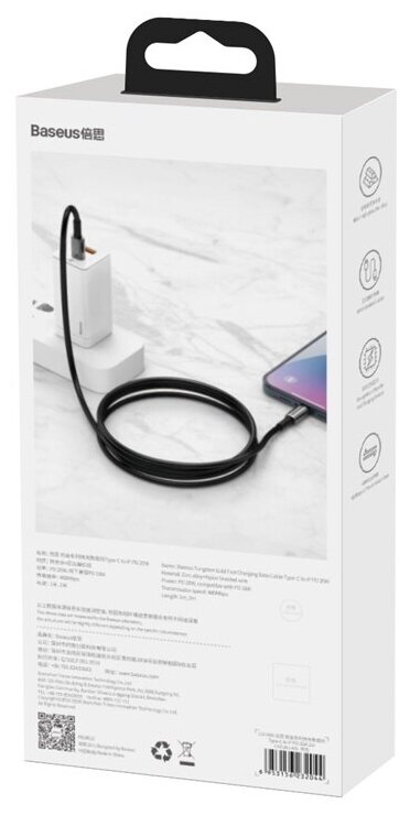 Дата-кабель 8pin-C Baseus Tungsten Gold Fast Charging PD 20W 2м, черный (CATLWJ-A01) интересное: