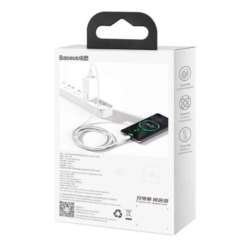 Baseus Superior Series Fast Charging Data Cable USB - Type-C 66W 1m White CATYS-02 .