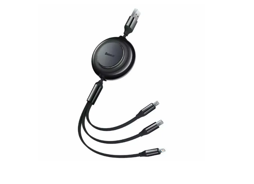 Кабель для зарядки / быстрой зарядки 3 в 1 /универсальная / Выдвижной кабель/ Baseus Bright Mirror Data Cable USB to M+L+C 3.5A 1.1m Black CAMJ010001 интересное: