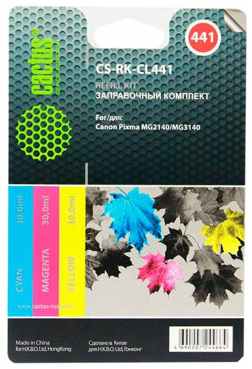 СохранитьРасходный материал для печати Cactus CS-RK-CL441 многоцветный 3x90мл (Заправочный набор) интересное: