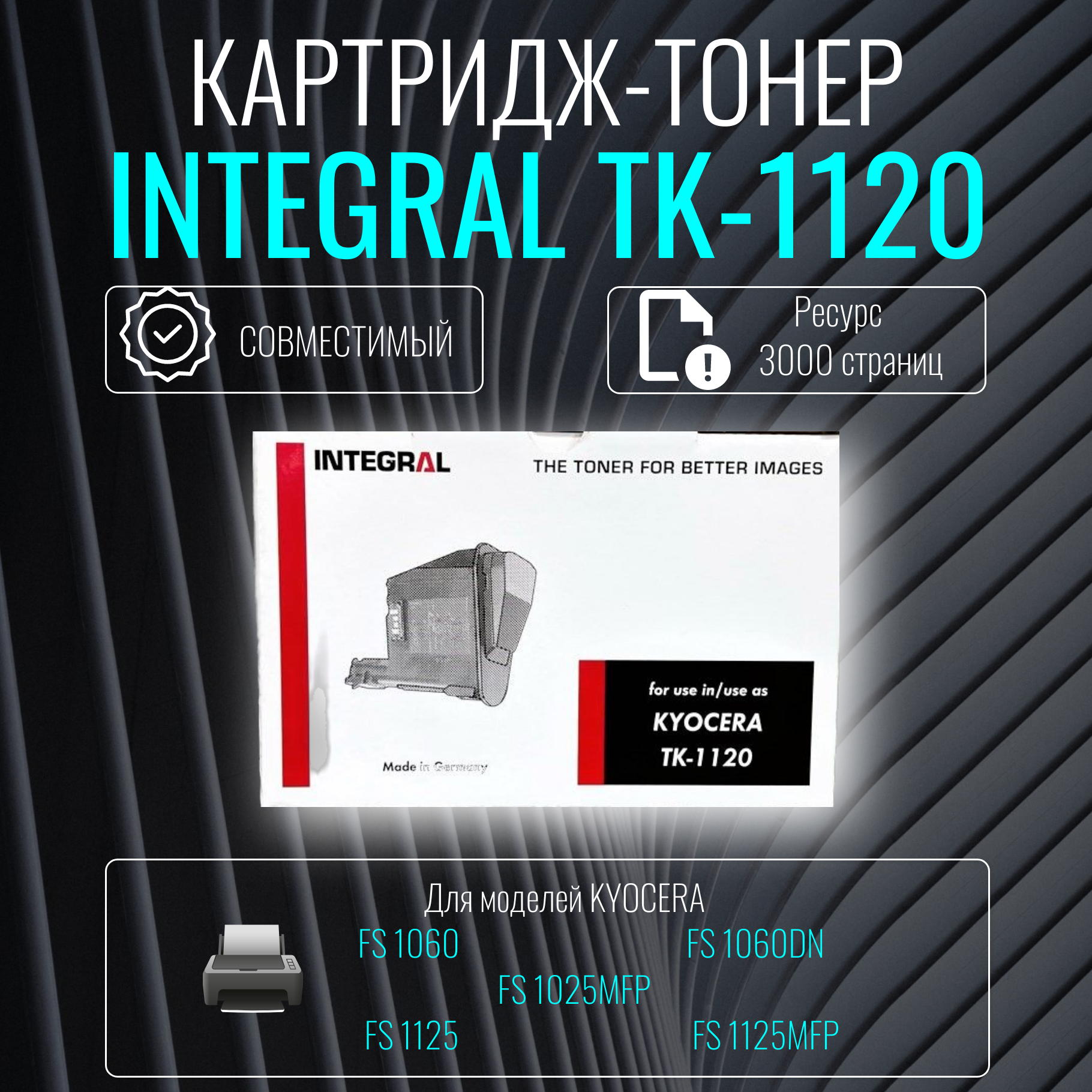 INTEGRAL Расходные материалы TK-1120 Картридж для Kyocera FS-1060DN 1025MFP 1125MFP, 3К, 12100121C