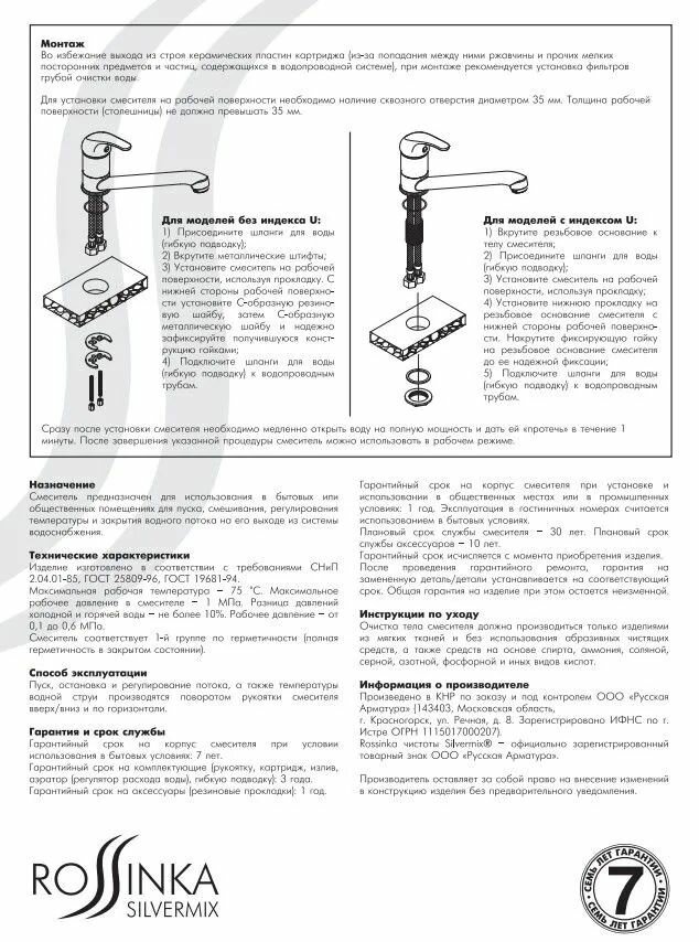 | Комплектация | крепления, аэратор, гибкая подводка |