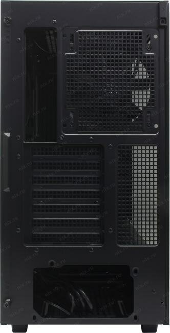 | Плюсы: | Добротный относительно просторный корпус. На верхнюю сторону спокойно помещается 360я водяная ( её же можно ставить и на лицевую сторону). Просторный отсек для блока питания, все провода можно аккуратно убрать. Стильная и непростая подсветка на лицевой панели. |