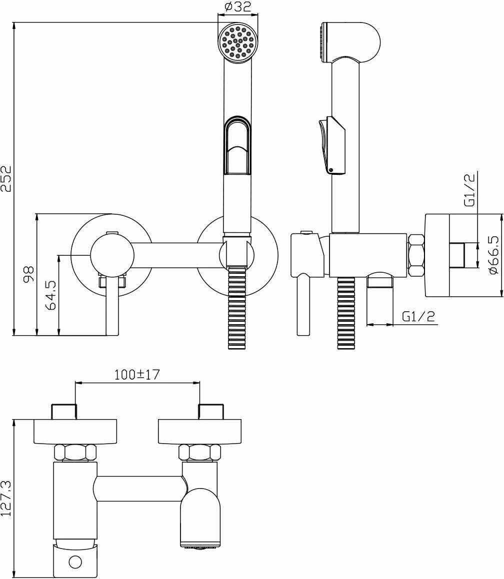 ROSSINKA X25-52, Смеситель одноручный (25 мм) с гигиеническим душем, встраиваемый, хром