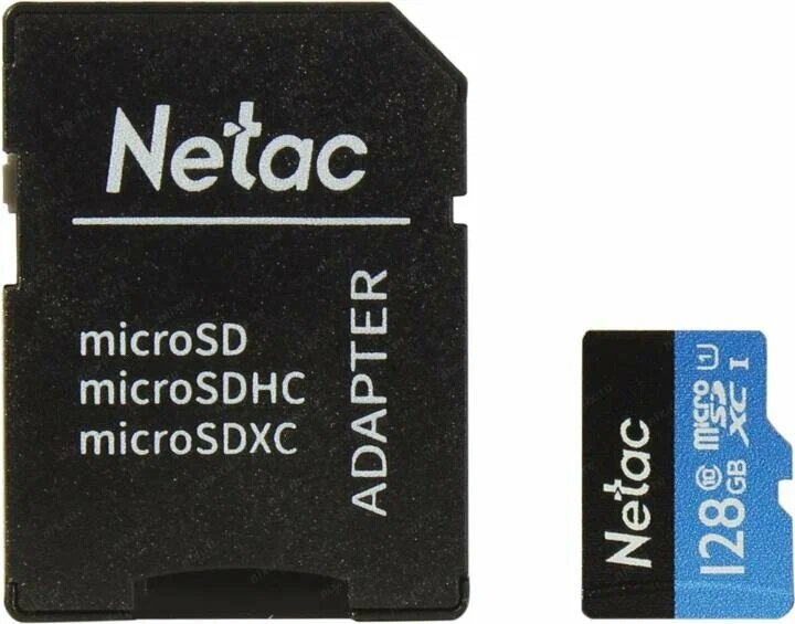 MicroSD 128 Гб Netac P500 Standard UHS-I (90 Mb/s) + SD адаптер (Class 10)