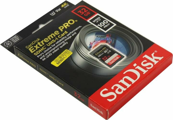 Карта памяти SanDisk SDHC 32GB Extreme Pro UHS-I U3 V30 100/90 МБ/с
