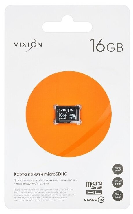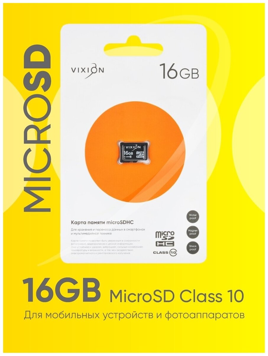 Карта памяти MicroSD 16GB VIXION Class 10 без адаптера интересное: