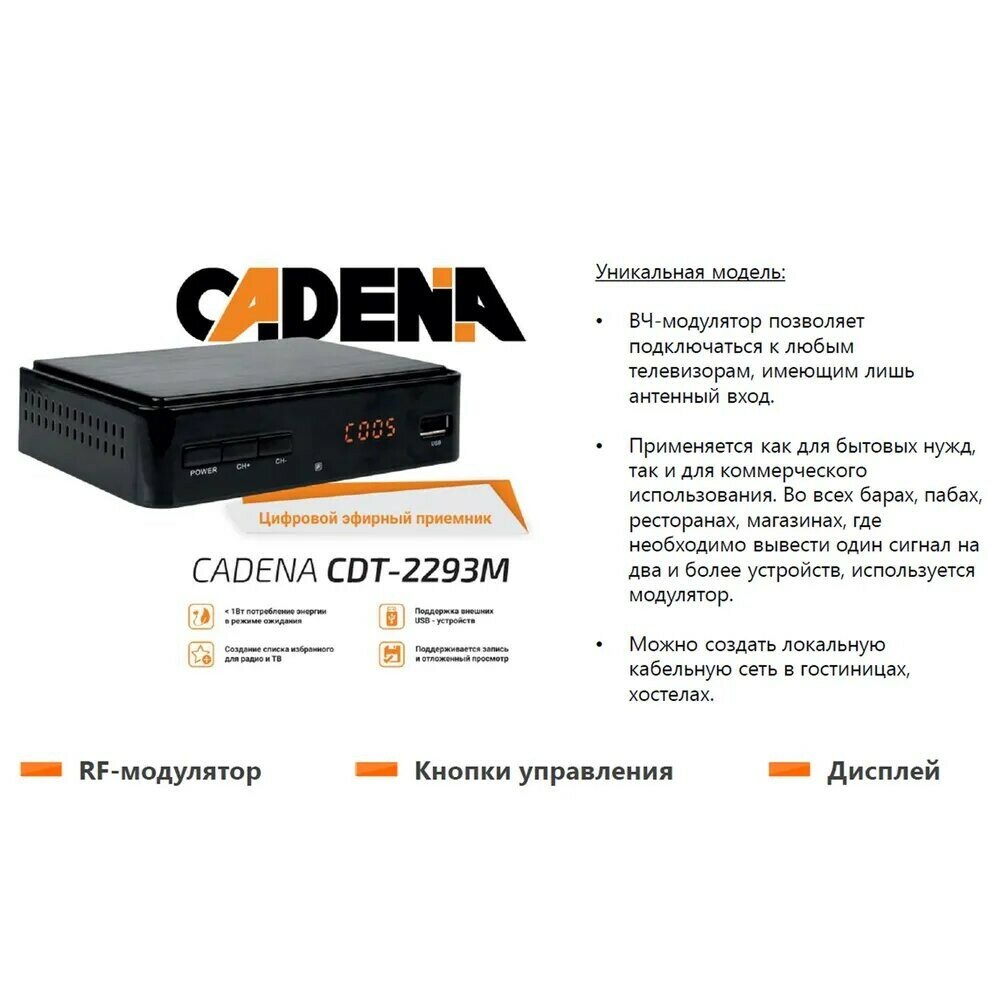 Цифровой эфирный приемник Cadena CDT-2293M, c ВЧ модулятором
