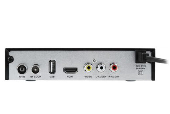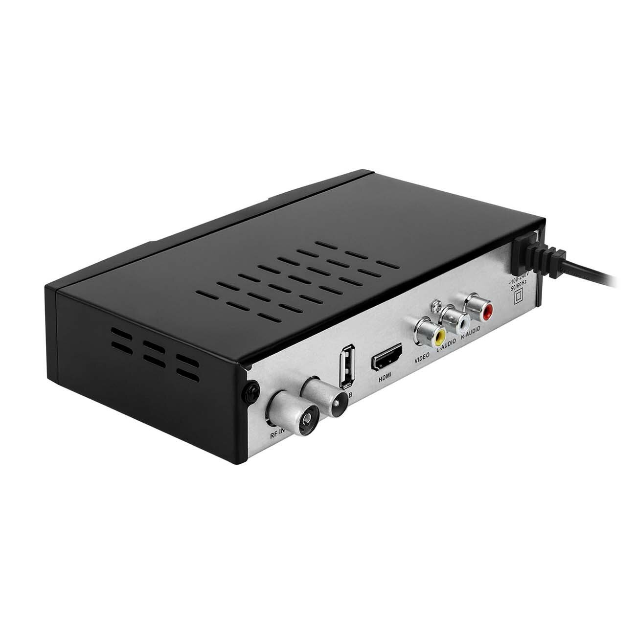 | Плюсы: | металлический корпус, кнопки и дисплей на передней панели, встроенный блок питания, и выход на тюльпаны на задней стенке, что удобно подключать старый телевизор. |