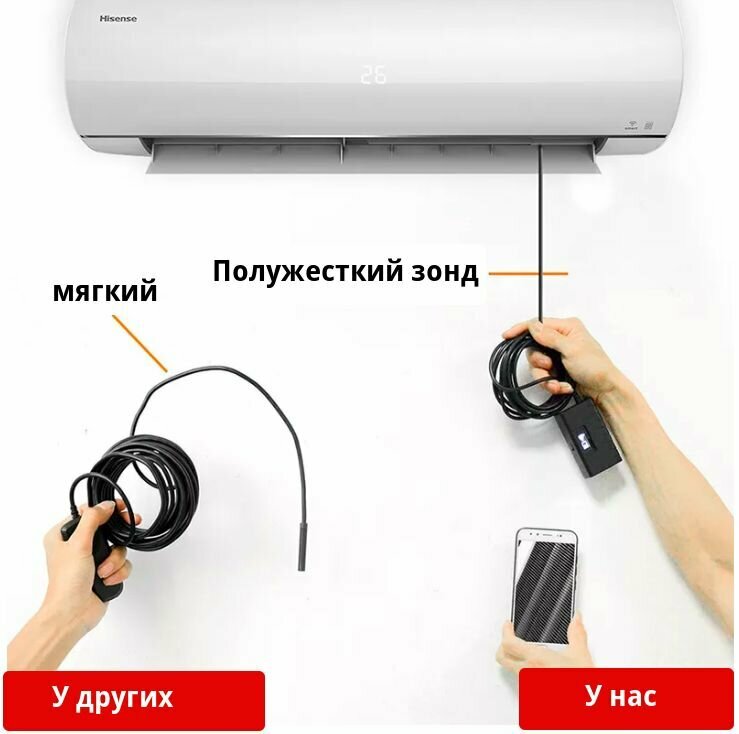 Wi-Fi Эндоскоп 3.5 метра Full HD 1920x1080, 2 мегапикселя, с комплектом насадок и телескопической ручкой интересное: