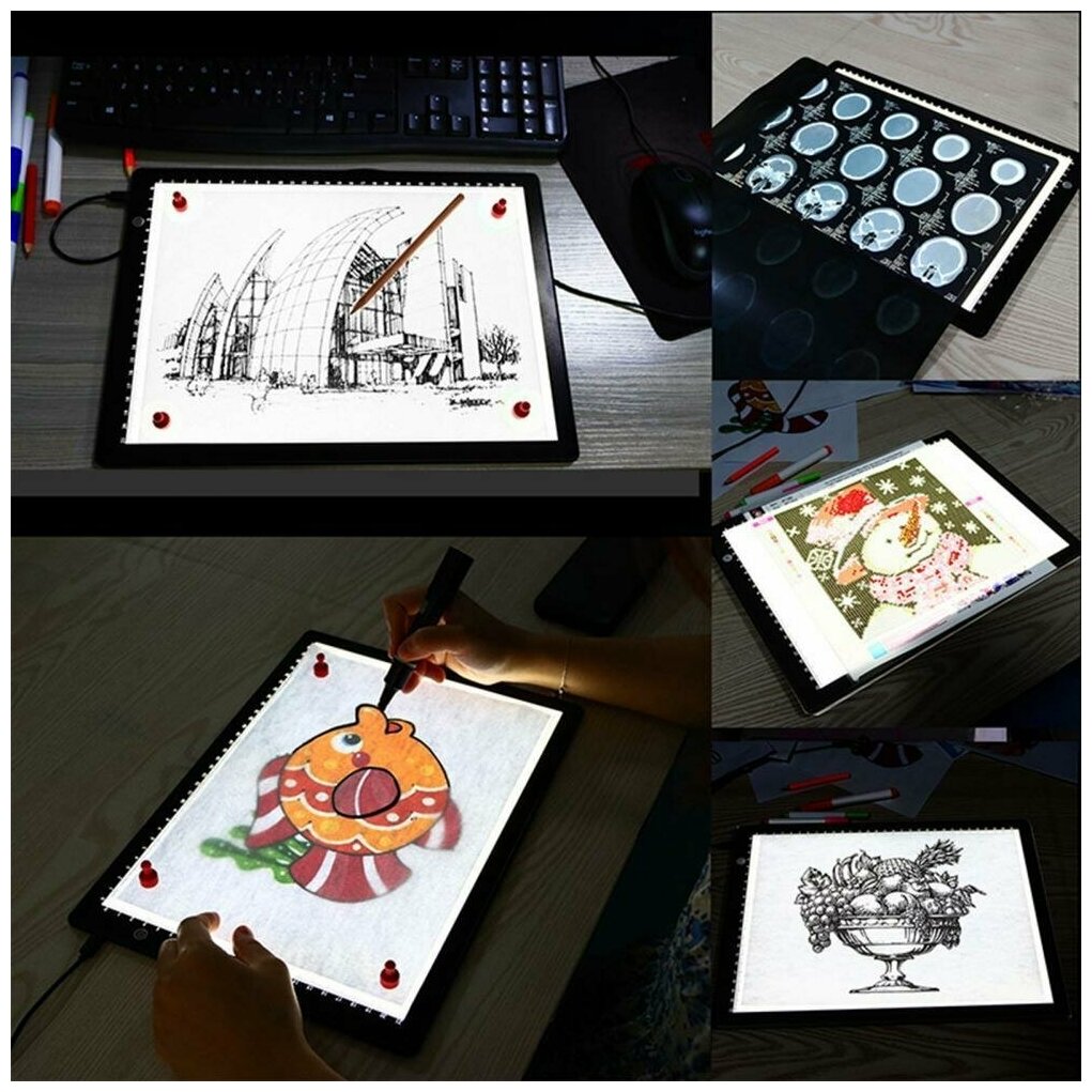 Светодиодный планшет - копировальная доска, без мерцания противоскользящий ультратонкий магнитный А4 интересное: