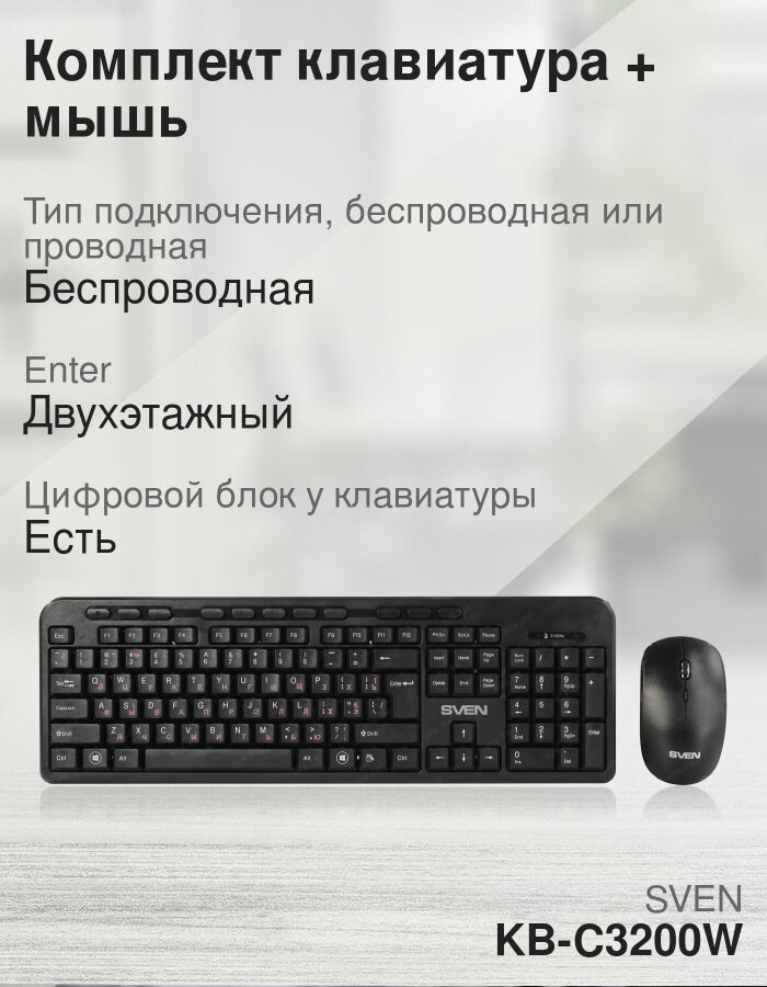 Беспроводной набор клавиатура +мышь SVEN KB-C3200W, черный sv-019044