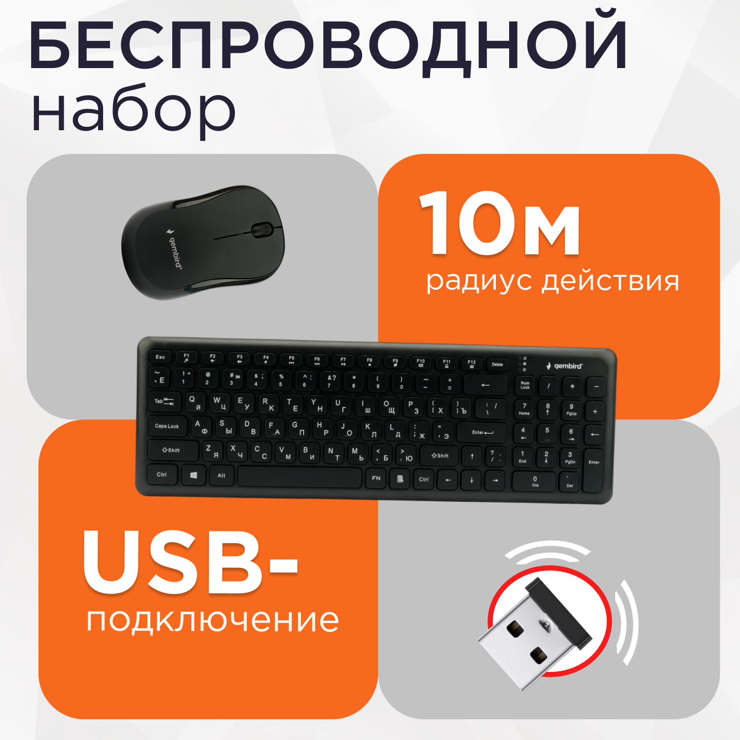 Беспроводной комплект клавиатура + мышь Gembird