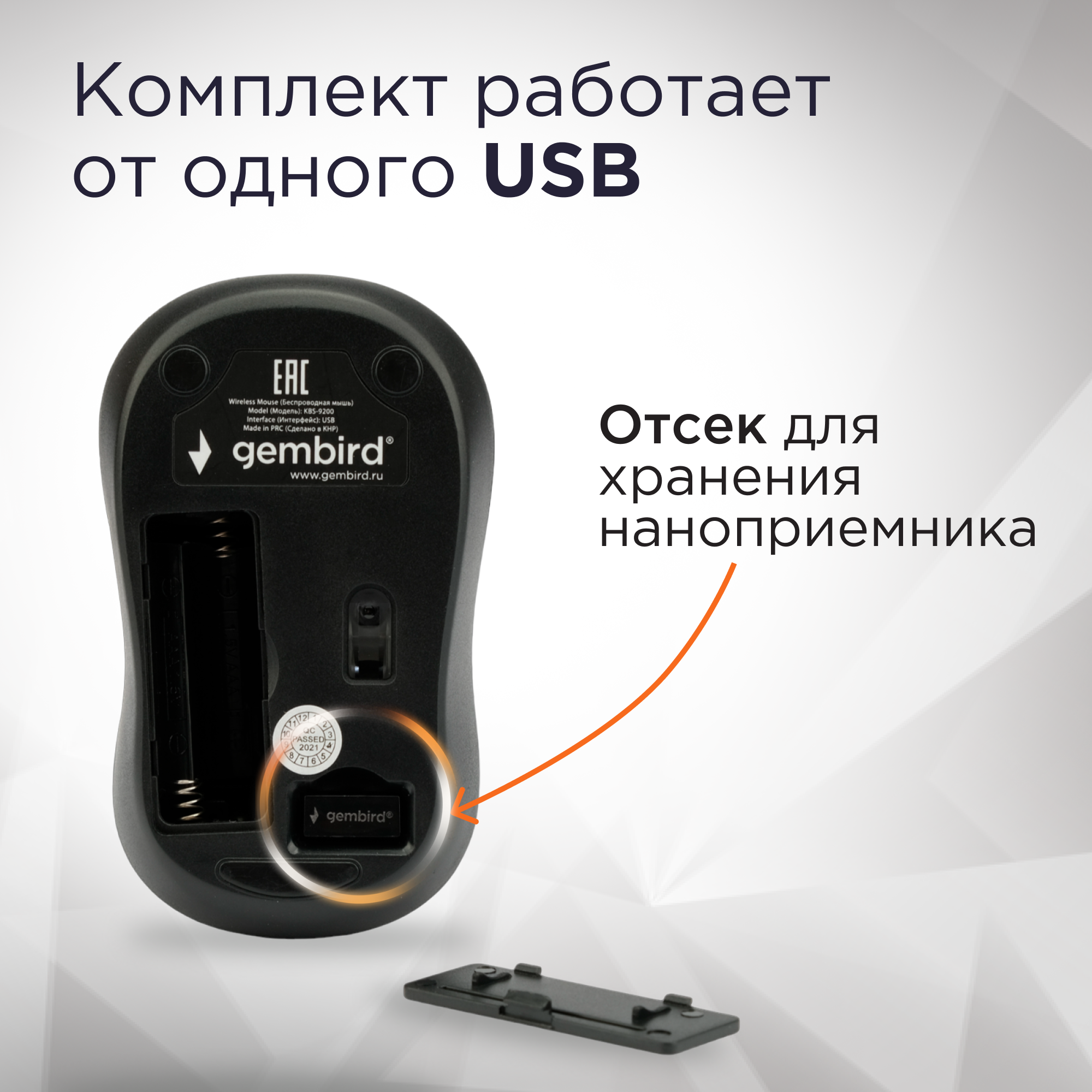 СохранитьКлавиатура + мышь Gembird KBS-9200, беспроводная, USB, черный (KBS-9200) интересное: