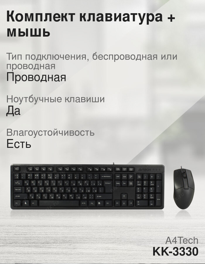 Комплект (клавиатура+мышь) A4TECH KK-3330, USB, проводной, черный [kk-3330 usb (black)]