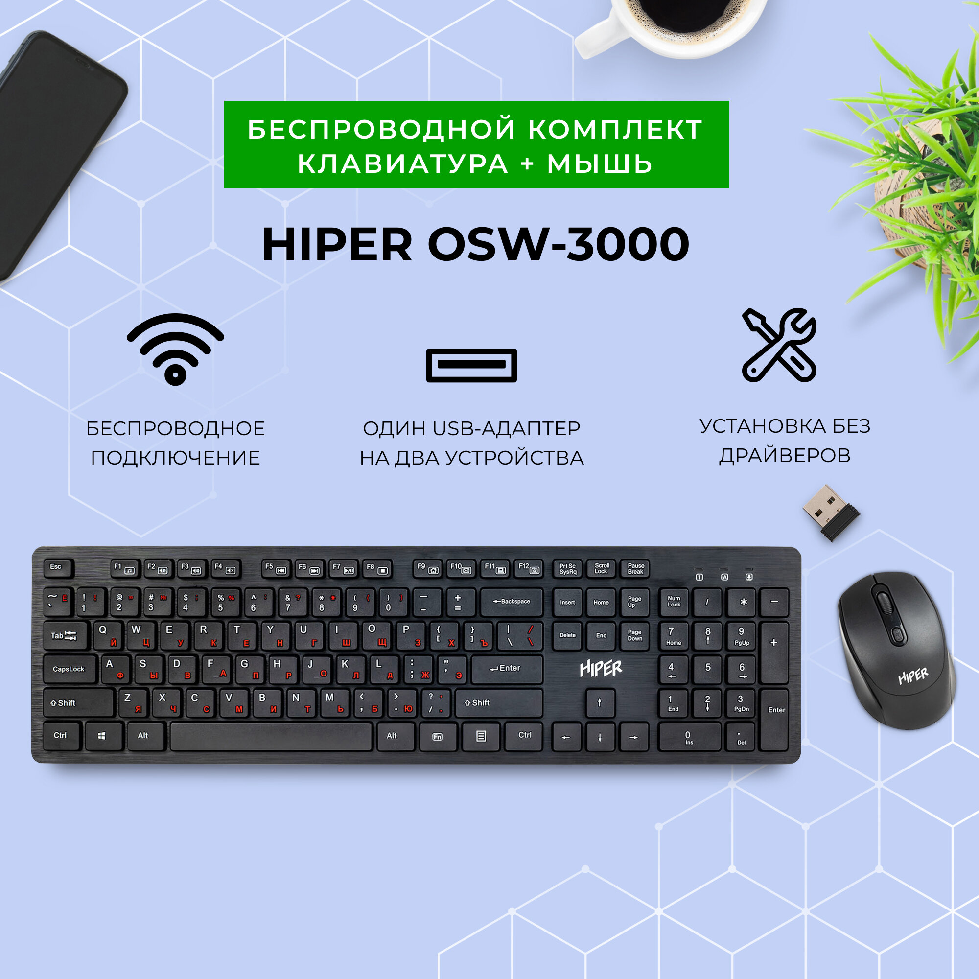 Комплект беспроводные клавиатура+мышь HIPER OSW-3000 черный