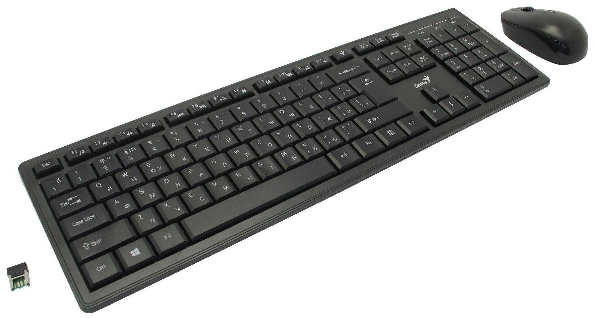 Комплект беспроводной Genius Smart KM-8200 клавиатура+мышь, USB, 1 мини-ресивер на оба устройства. Клавиатура: 104 клавиши кнопка SmartGenius, клавиши типа «Chocolate», мембранная; Мышь: оптическая, 800-1600 DPI. Цвет: черный (31340003417)