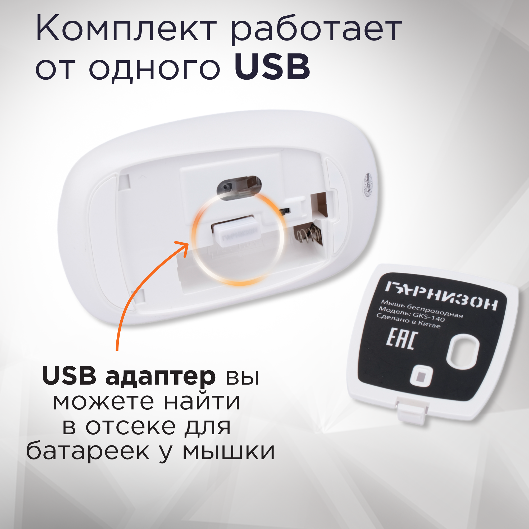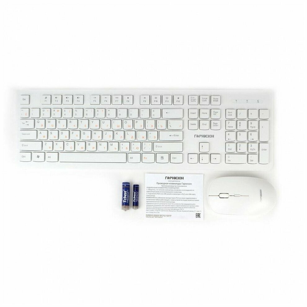 Клавиатура + мышь Гарнизон GKS-140, беспроводная, USB, белый (GKS-140)