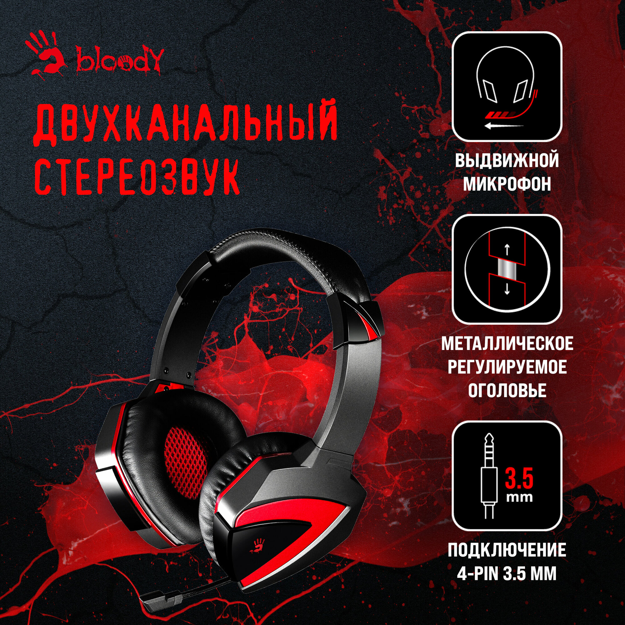 Гарнитура игровая A4TECH Bloody G500, для компьютера, мониторные, проводные, черный / красный [a4tech g500]