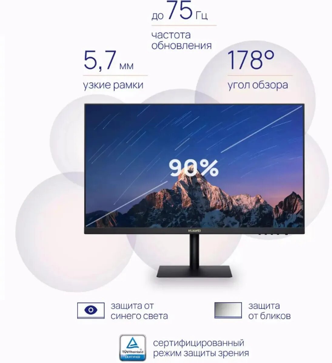 Монитор 23,8" Huawei AD80HW 53060580 IPS, 1920*1080, 5 мс, 250 кд/м2, 75 Гц, 178°/178°, VGA, HDMI, чёрный