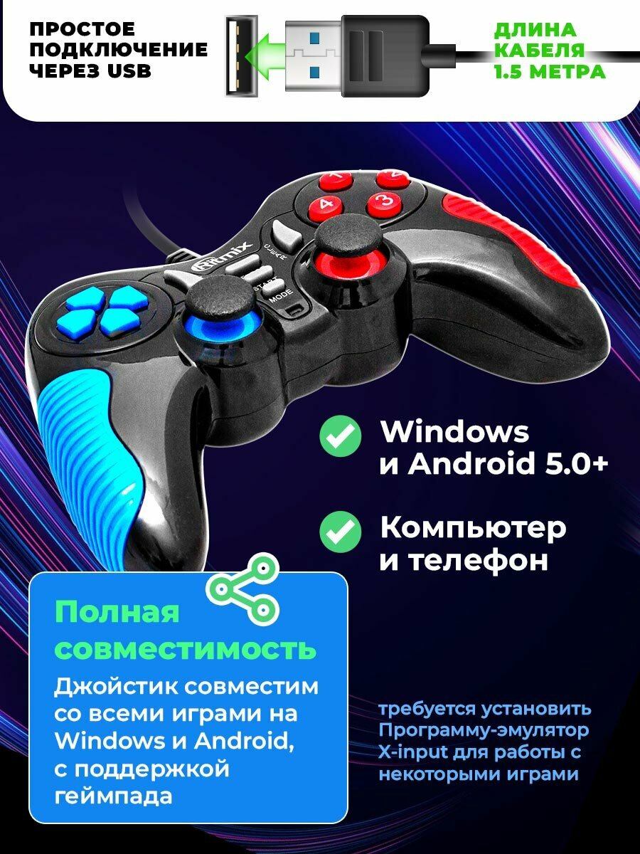 Геймпад проводной Ritmix GP-013 (USB+OTG / для Windows и Android / 1.5 м)