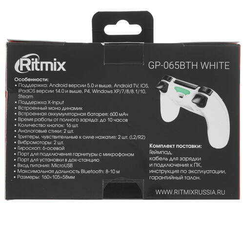 Геймпад RITMIX GP-065BTH белый (80001785)
