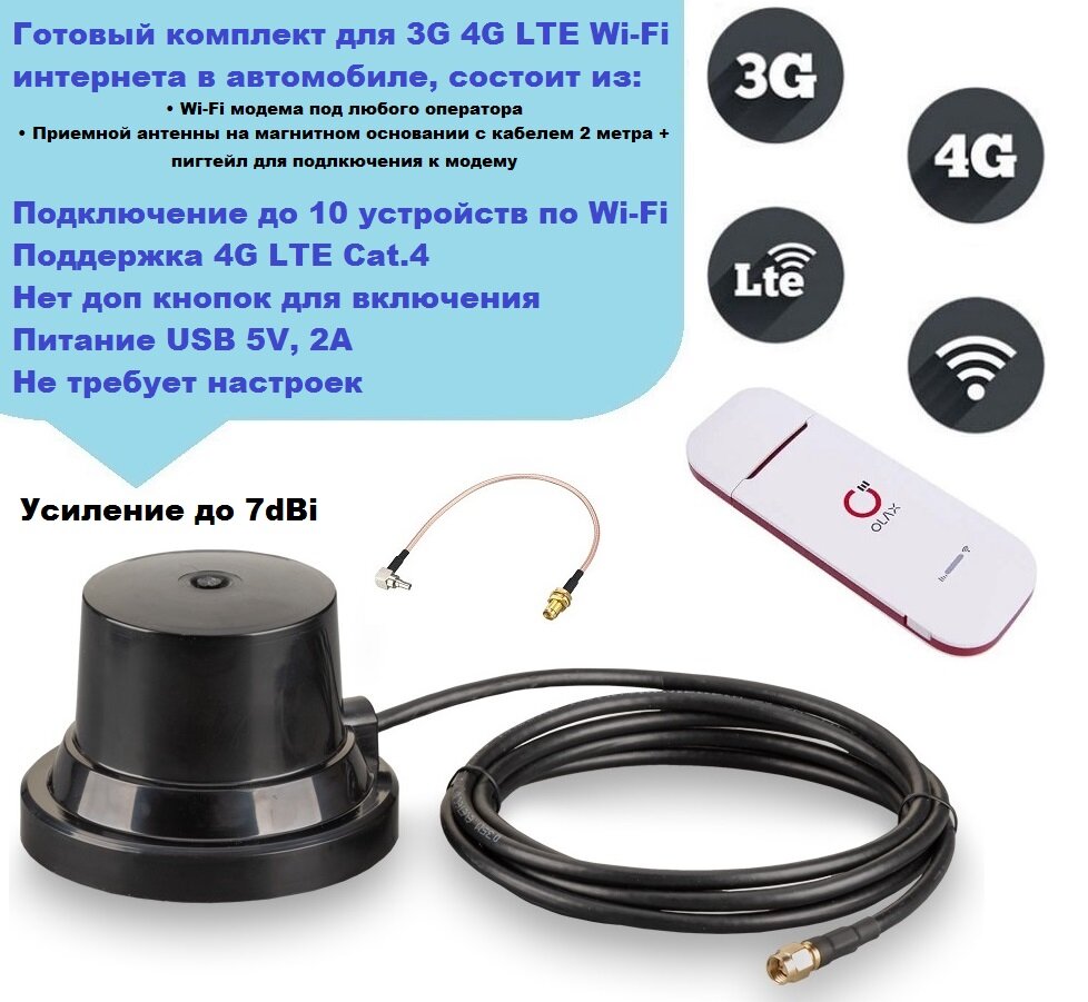 Wi-Fi USB-модем Olax U90h-e с антенной крокс + 2м. кабель, комплект интернета в авто интересное: