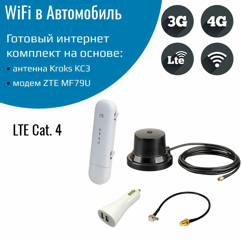 Автомобильный комплект WiFi 3G/4G/LTE модем для автомобиля ZTE MF79U с антенной KC3