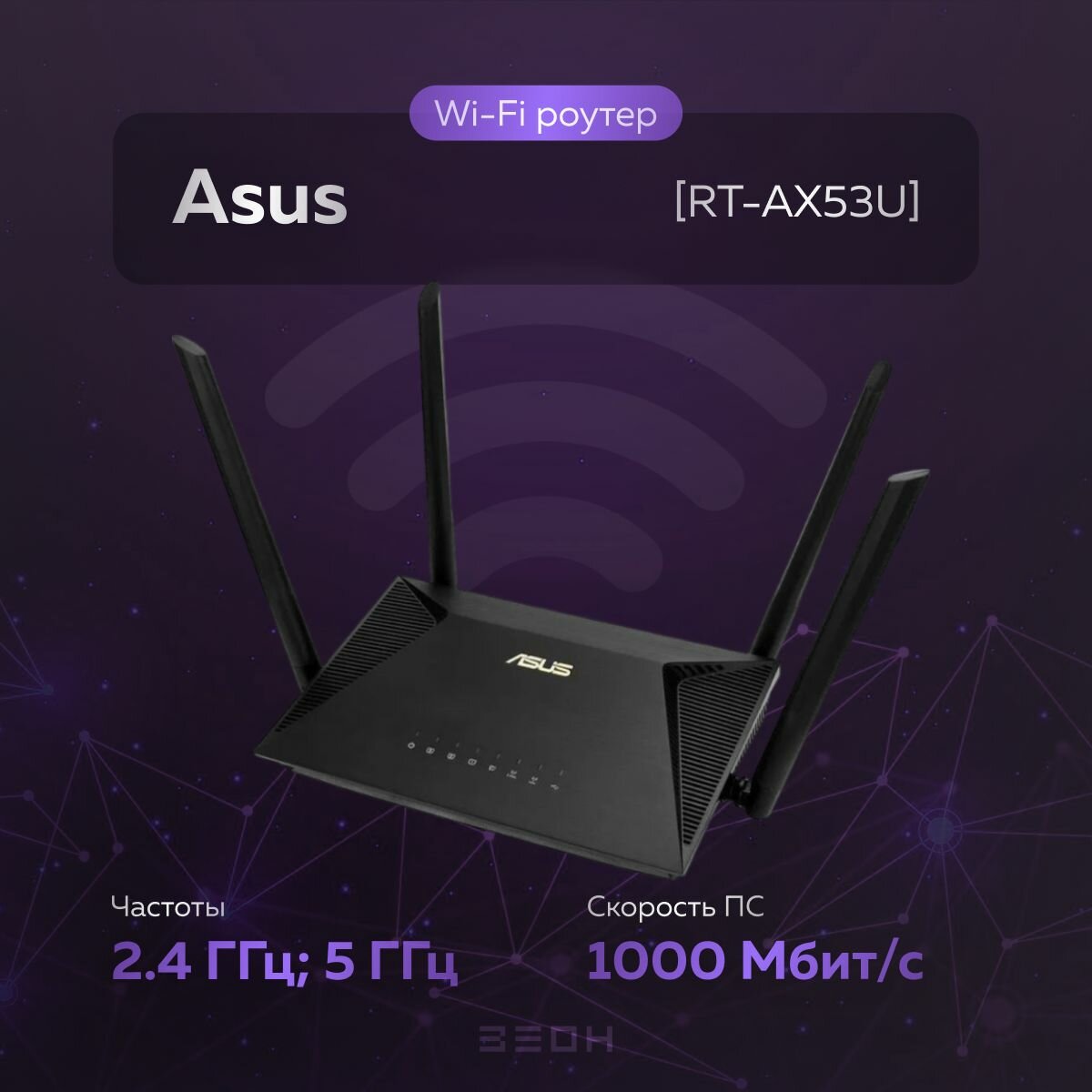 Wi-Fi роутер ASUS RT-AX53U, AX1800, черный