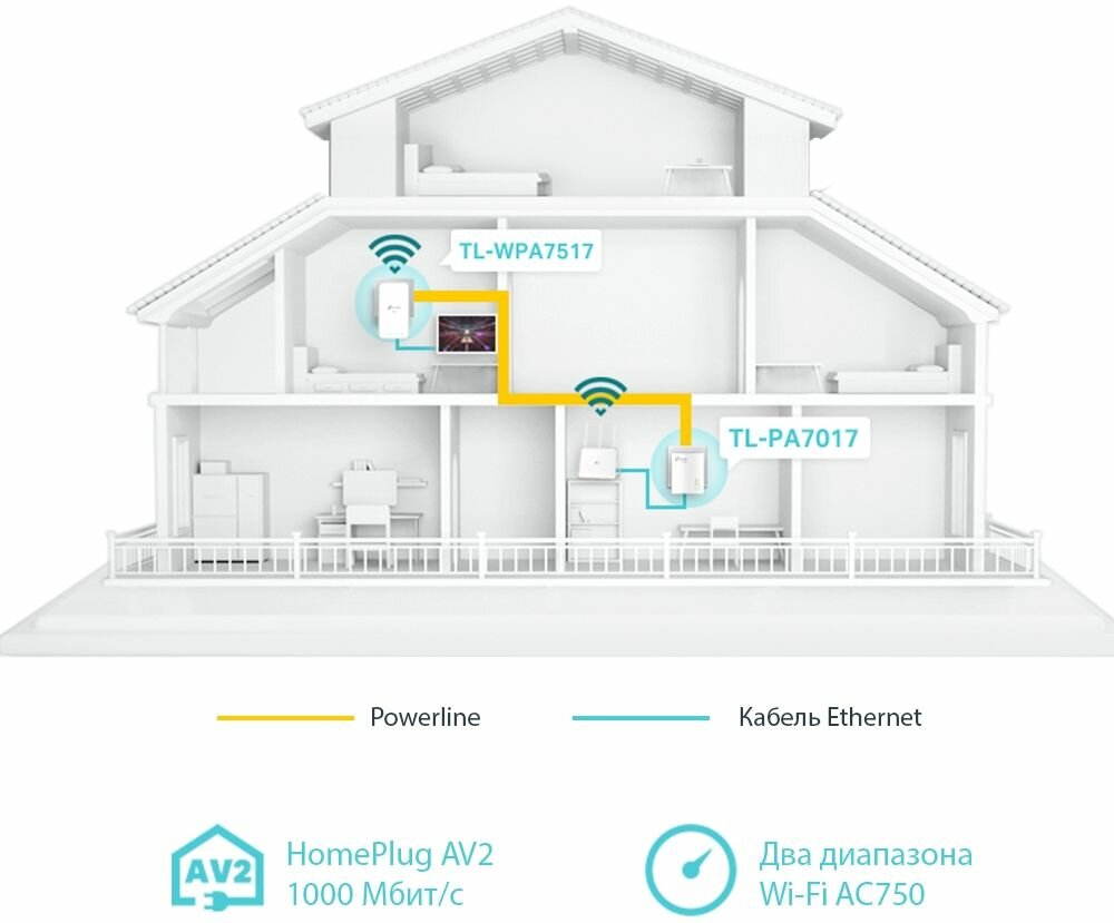 | Дополнительная информация | размеры TL-WPA7517: 69.5 × 35 × 124.1 мм, TL-PA7017: 52 × 28.5 × 65 мм; Powerline до 300 метров по имеющейся электропроводке; скорость Powerline до 1000 Мбит/с; скорость Ethernet до 1000 Мбит/с; стандарты и протоколы: HomePlug AV2, HomePlug AV, IEEE 1901, IEEE 802.3, IEEE 802.3u, IEEE 802.3ab, IEEE 802.11b/g/n (2,4 ГГц), IEEE 802.11a/n/ac (5 ГГц) |