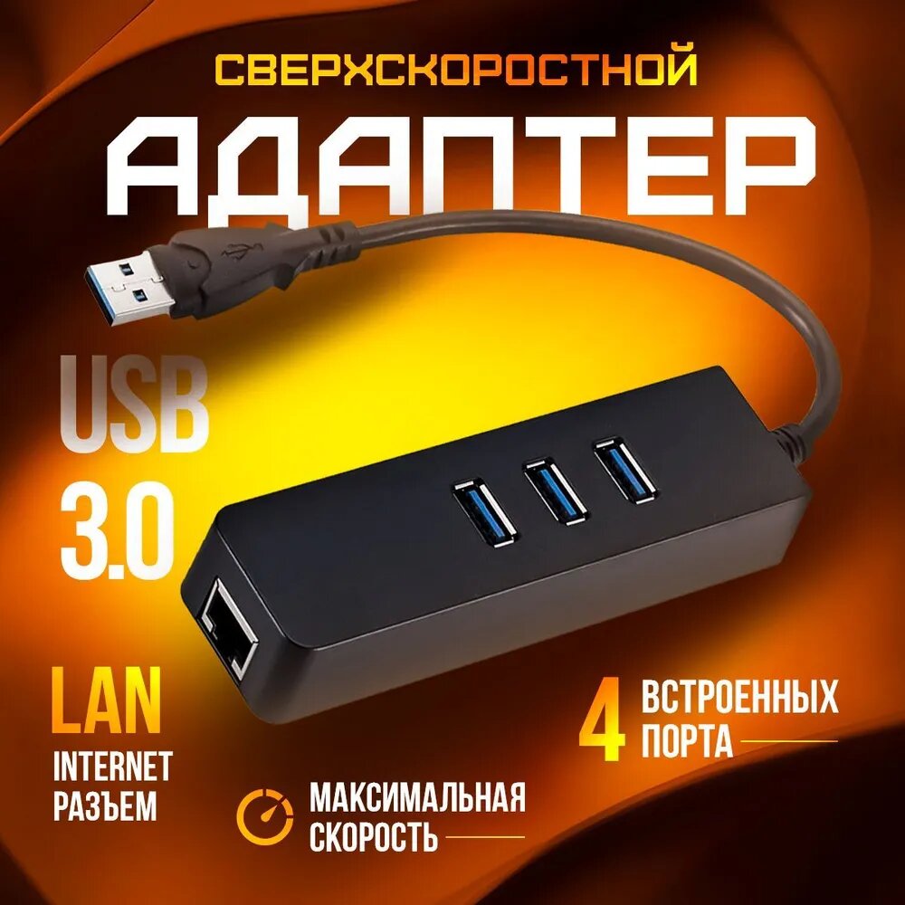 Хаб/Концентратор USB "4 в 1" Ethernet сетевой адаптер, 3 x USB 3.0 + RJ45 переходник LAN Интернет 100 Мбит/с интересное: