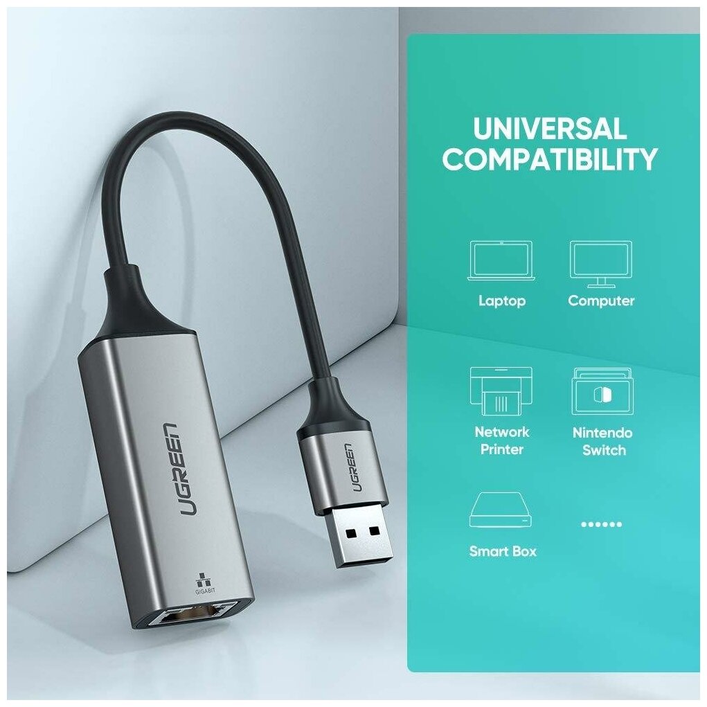 Сетевой адаптер UGREEN CM209, USB 3.0 на RJ-45 (1Gb), Серый 50922_