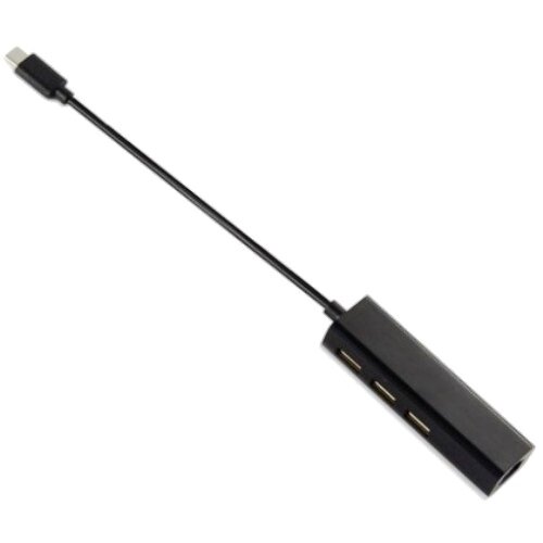 Сетевая карта RJ-45 KS-is KS-339B USB-C 2.0 LAN Ethernet кабель адаптер RTL8152B + хаб три порта - чёрный