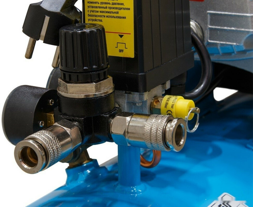 | Минусы: | Клапан слива конденсата немного сбоку а не в низу ресивера!, отсутствует на ресивере штуцер/заглушка для подключения доп. ресивера минуя редуктор давления. Но это все мелочи. |