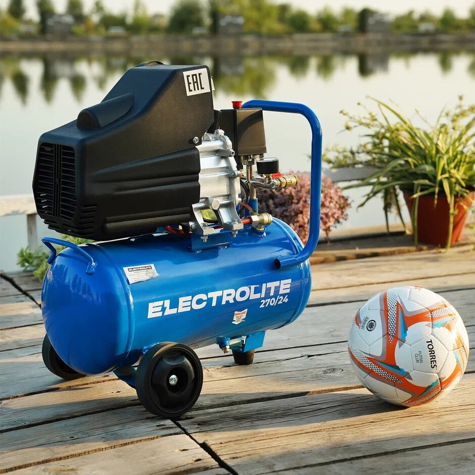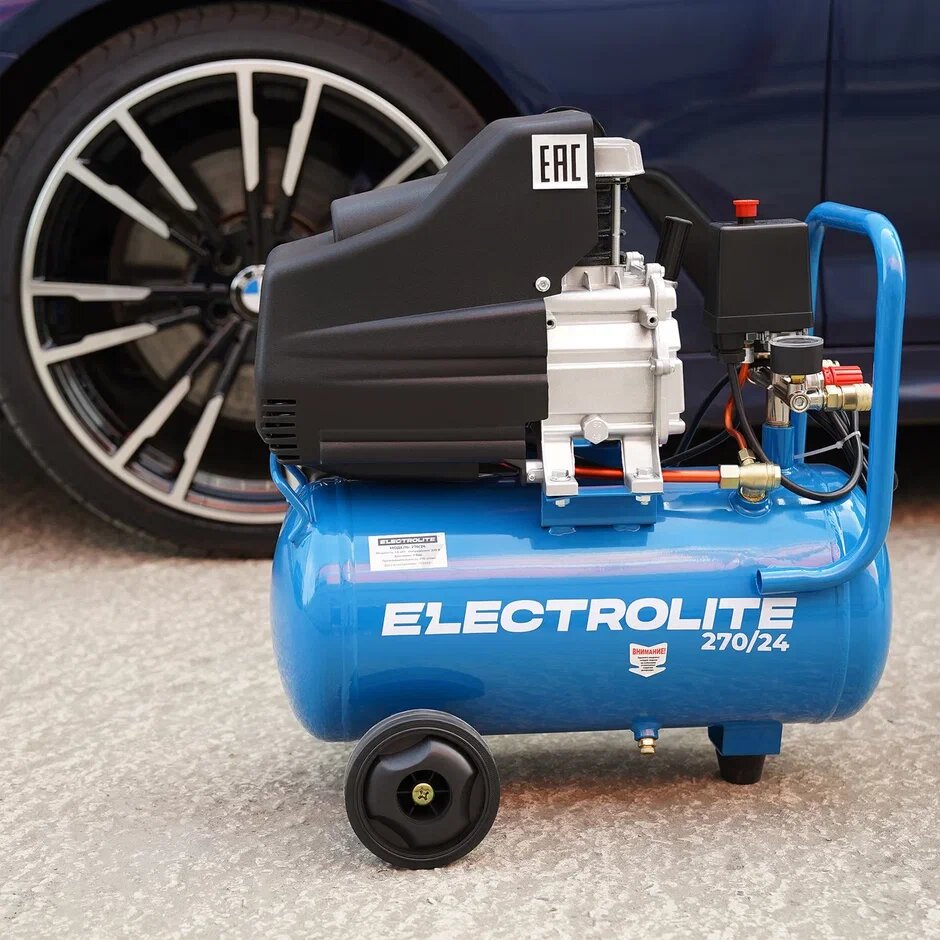 Компрессор воздушный / Компрессор воздушный 24л / Воздушный компрессор / Компрессор для аэрографа Electrolite 270/24 (ресивер 24 литра, 270 л/мин, 1800 Вт, 8 Атм, электрический, 220В, передвижной )
