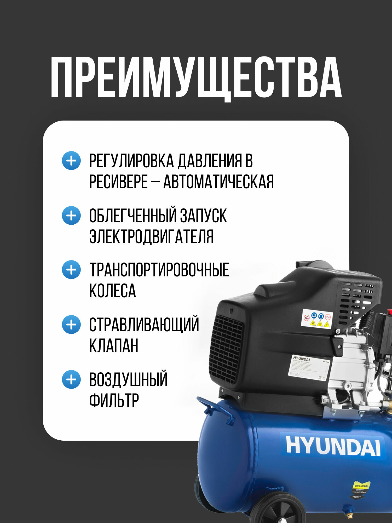 Компрессор воздушный масляный Hyundai HYC 2324 пневматический 24 л 230 л/мин / для пневмоинструмента