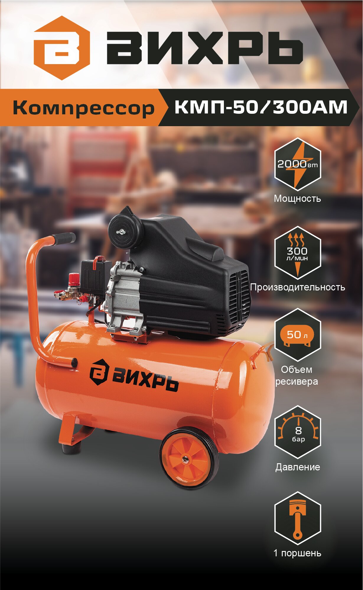 Компрессор Вихрь КМП-50/300АМ, 2000 Вт, 300 л/мин, 8 бар