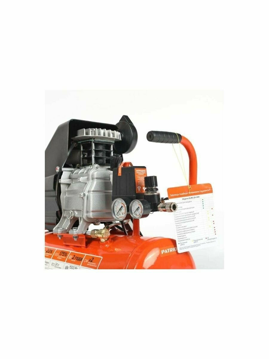 Компрессор PATRIOT поршневой масляный EURO 24-240 / 240 л/мин / 8 бар / 1500 Вт / 24 л / быстросъемный 1/4" + "елочка" / портативный / электрический / воздушный. Товар уцененный