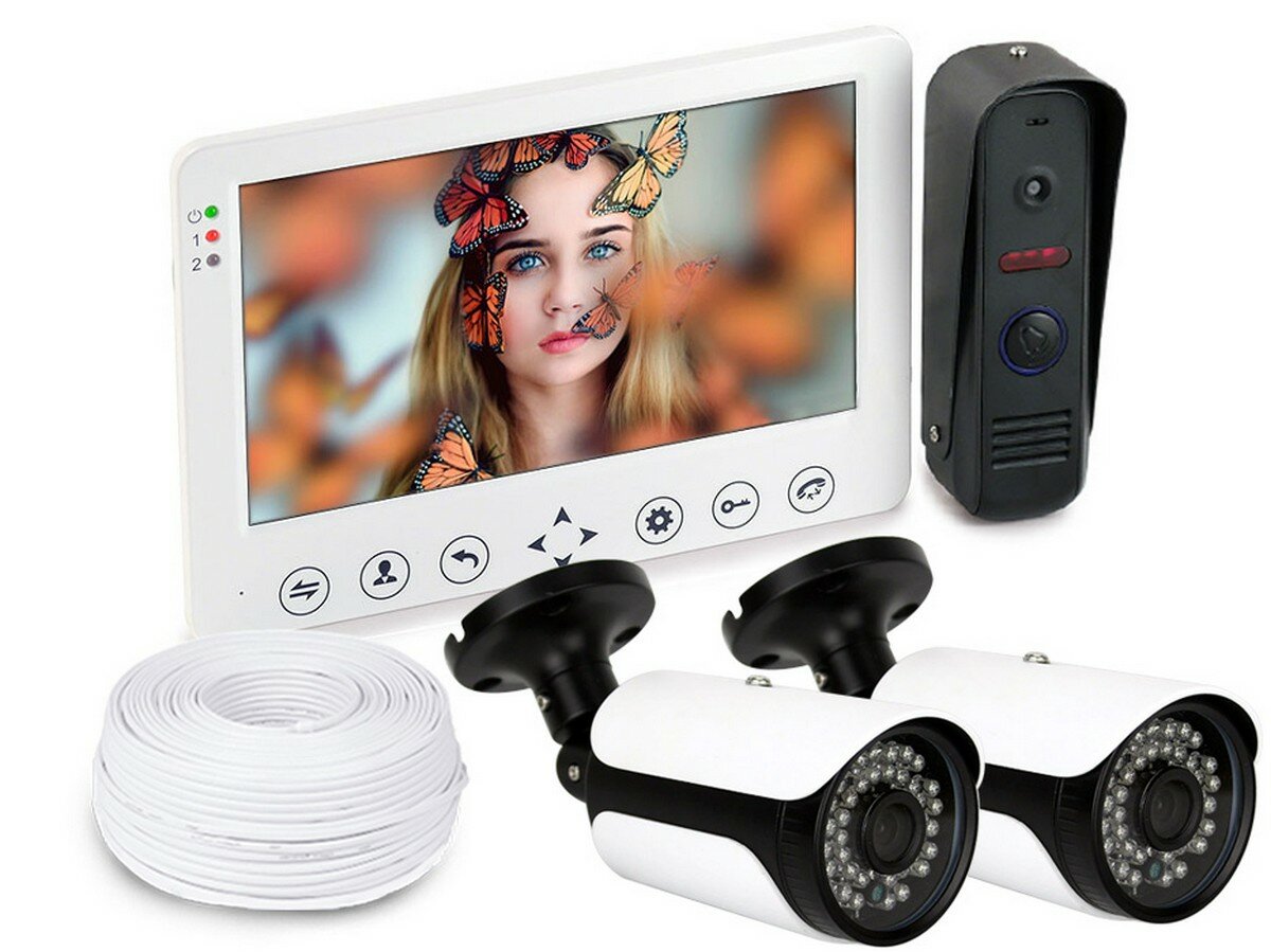 Набор (видеодомофон - две уличные видеокамеры) HDcom W715 и KDM-6215Gx2, домофон для квартиры с камерой подарочная упаковка интересное:
