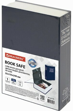 Сейф-книга "Английский словарь", 55х155х240 мм, ключевой замок, темно-синий, BRAUBERG, 291178 В комплекте: 1шт.
