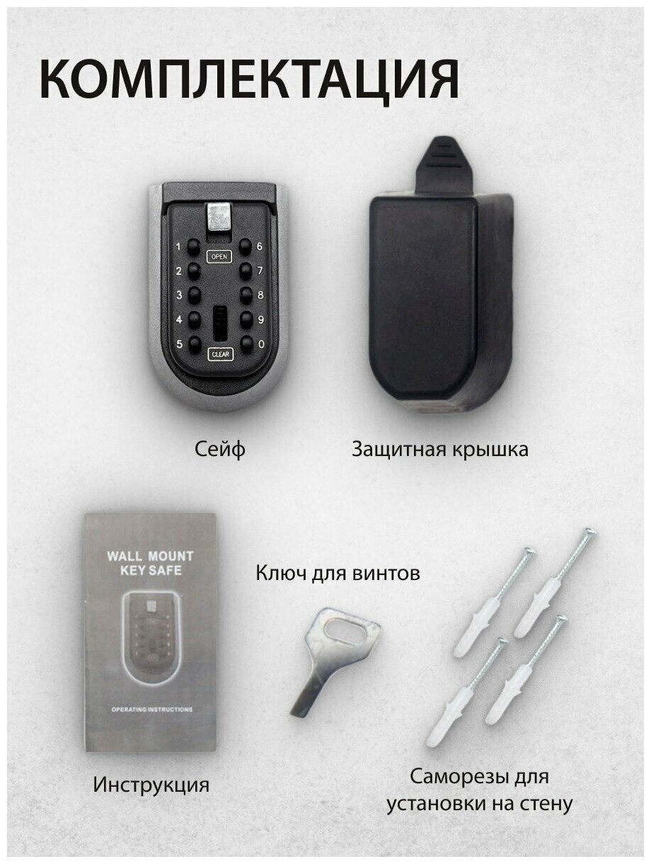 Закрытая ключница с кодовым замком, бокс сейф для ключей на стену, серый металлик интересное: