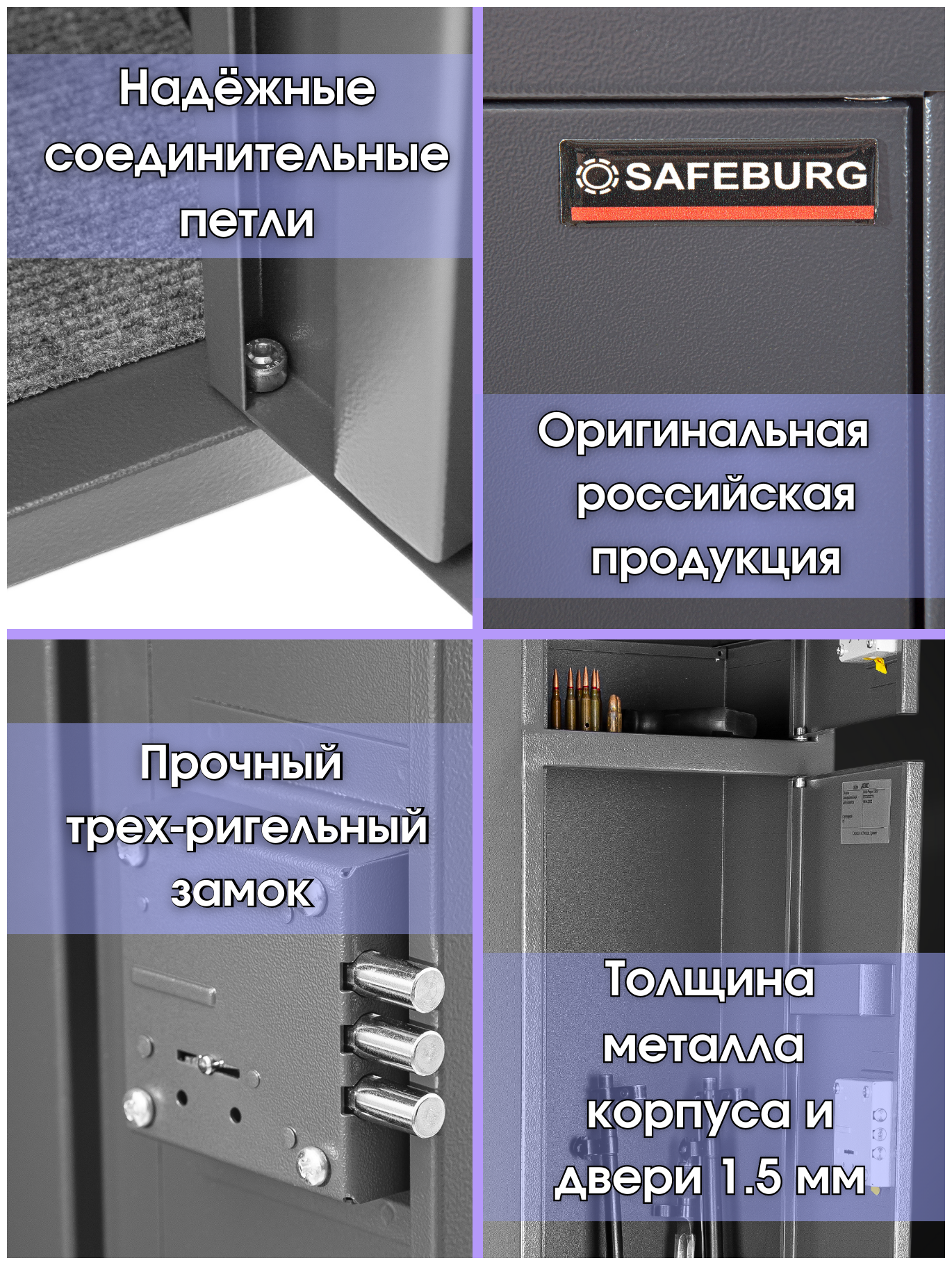 Сейф оружейный SAFEBURG Hunter L1 на 4 ствола до 130 см, ключевой замок, 153x30x20 см). Соответствует требованиям МВД России интересное: